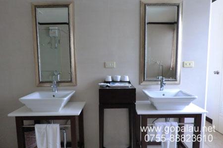 一张大双人床、空调设备、多频道卫星电视、冰箱、专用浴袍、私人保管箱、独立会客厅、卫浴设施、捕蚊灯、